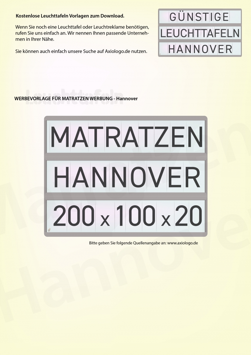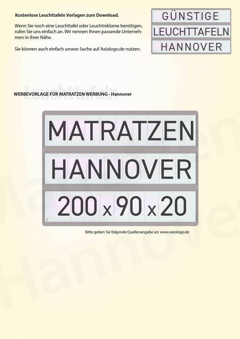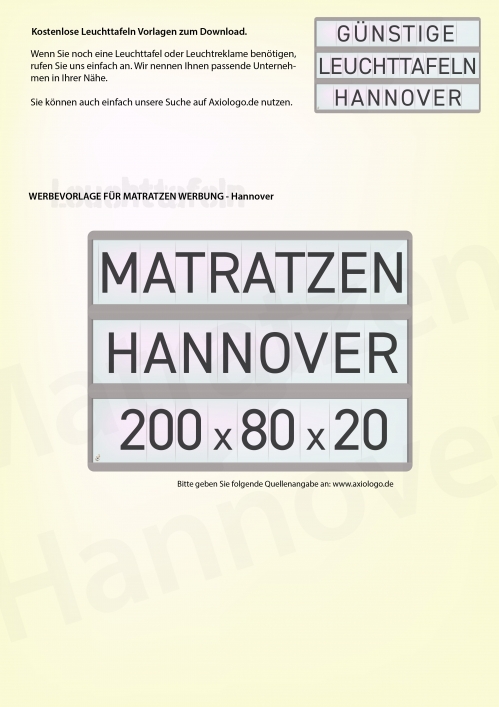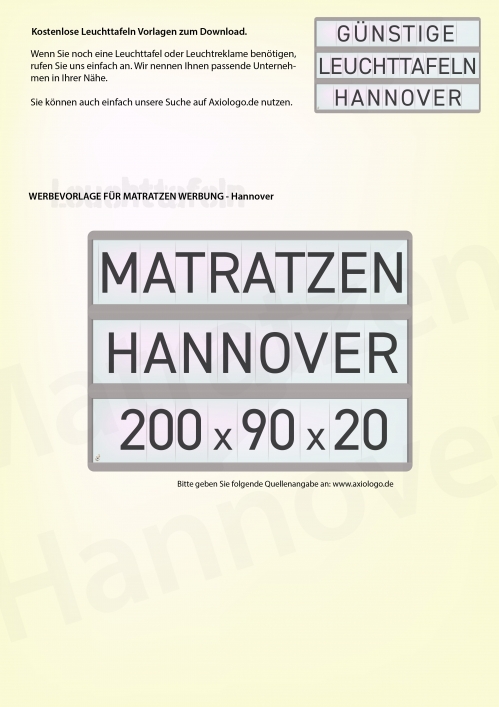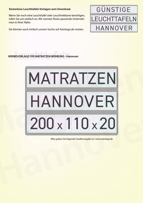 Vorlage für Matratzen Hannover Werbung. So können Sie ideal Ihre Leuchttafel nutzen. Die kostenlose Vorlage können Sie einfach nutzen und ergänzen.
